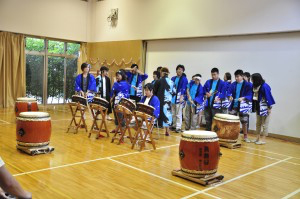 先生やヘルパーさんたちと一緒に一定のリズムを繰り返しながら太鼓を響かせます。セッティングや片付けまで仲間と協力するのも楽しみのひとつです。